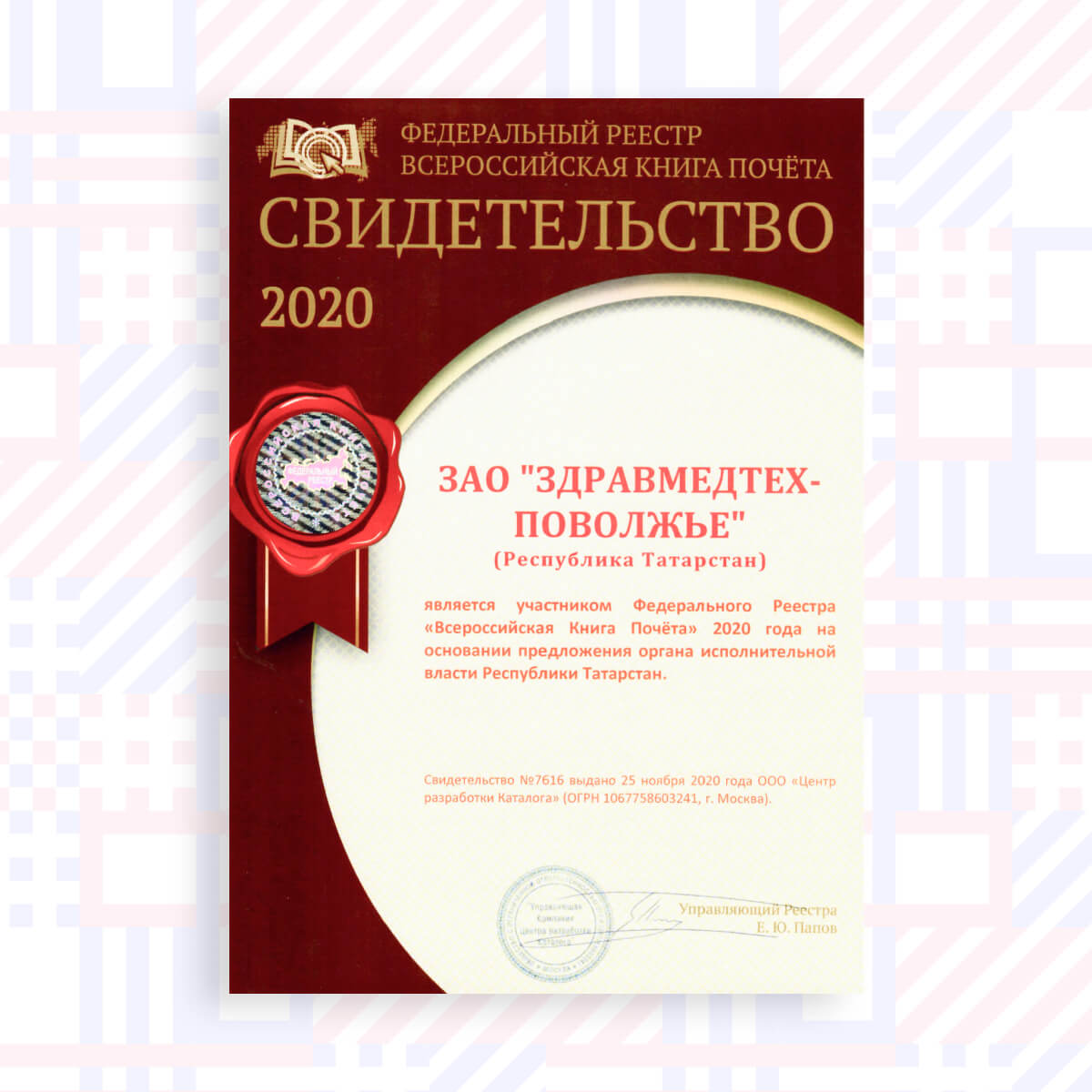 Предприятие является участником Федерального Реестра «Всероссийская Книга Почета» 2020 года
